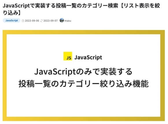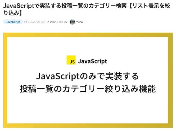 上の画像のリストレイアウトは「カード型」ですが、その他のレイアウトでも同じようにカテゴリーの並びに著者情報を表示することが可能です。
