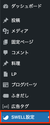 設定方法をご紹介します。管理画面のダッシュボードからSWELL設定を開きます。