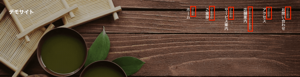 まずは以下のようにシンプルに、グローバルナビのラベルを縦書きにする方法をご説明します。
